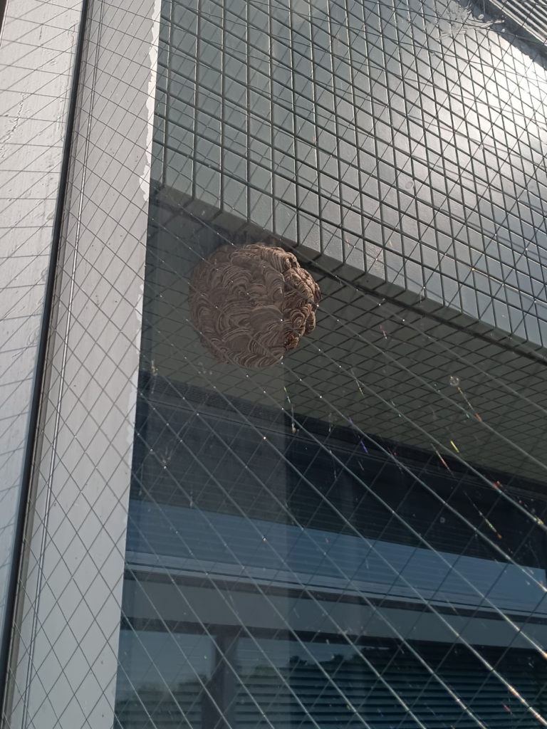 掛川の公的機関の5階にできたキイロスズメバチの巣と林の中のスズメバチの駆除してしました。