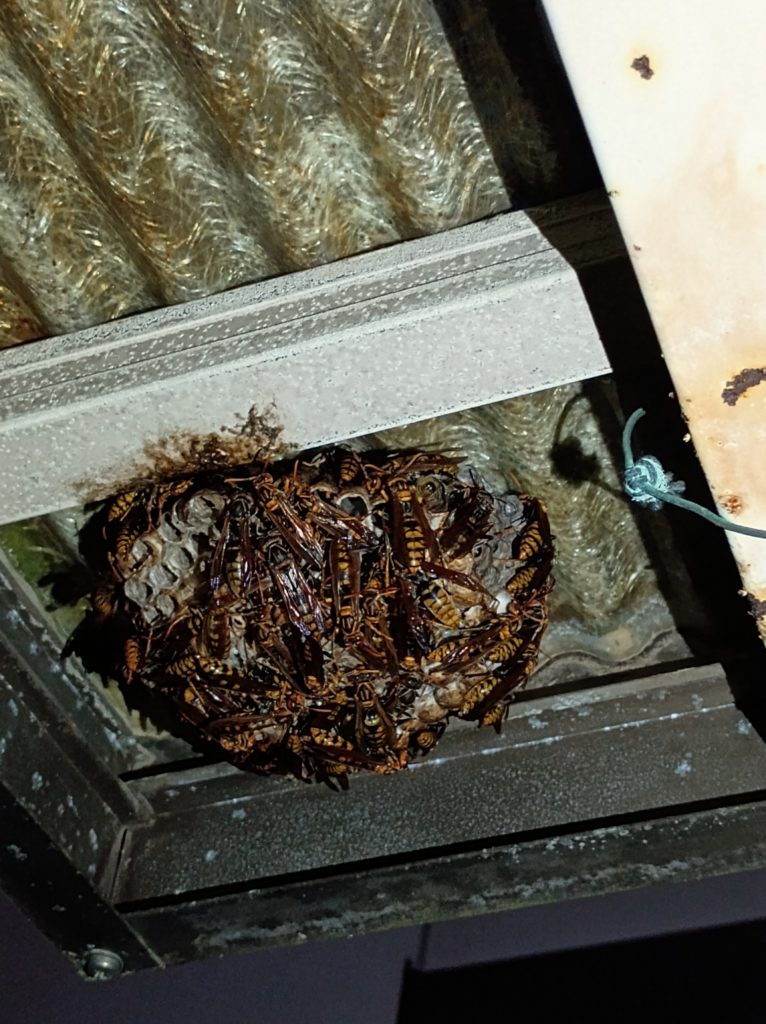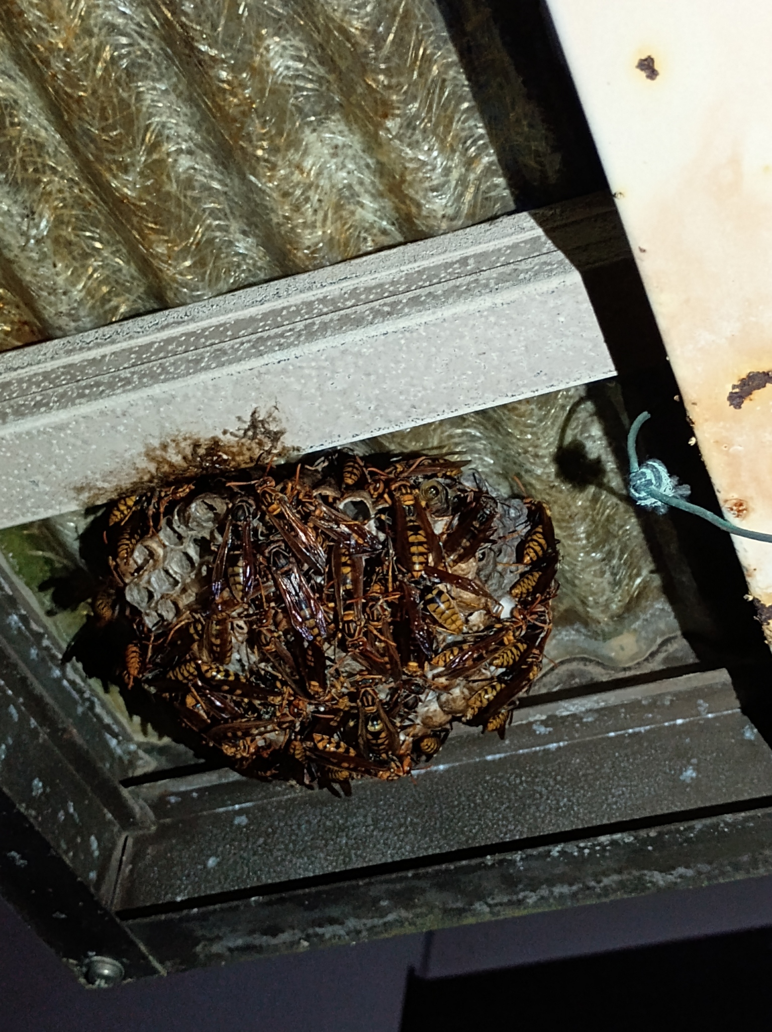 車庫にできるアシナガバチの巣は常に車の駆動音や振動にさらされているため、巣へのアプローチ?に慣れてしまい、