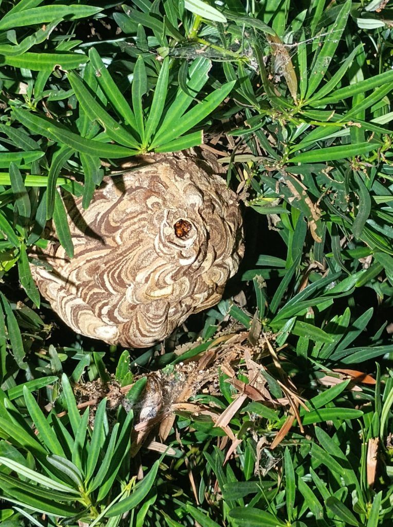 マキの木の中のスズメバチの巣、今年たくさん対応してます