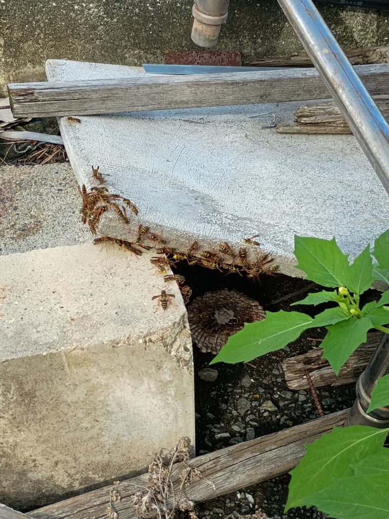 磐田市の食品工場にてアシナガバチの駆除してました 2025.09.17こんにちは、蜂駆除専門家「ふくろう」のweb担当の和田です磐田市の食品工場にてアシナガバチの駆除してました今回も似た場所に4つほど巣が密集してできてましたフタモンアシナガバチなので、気持ち手荒にはせずいつもよりそっと対応してました
